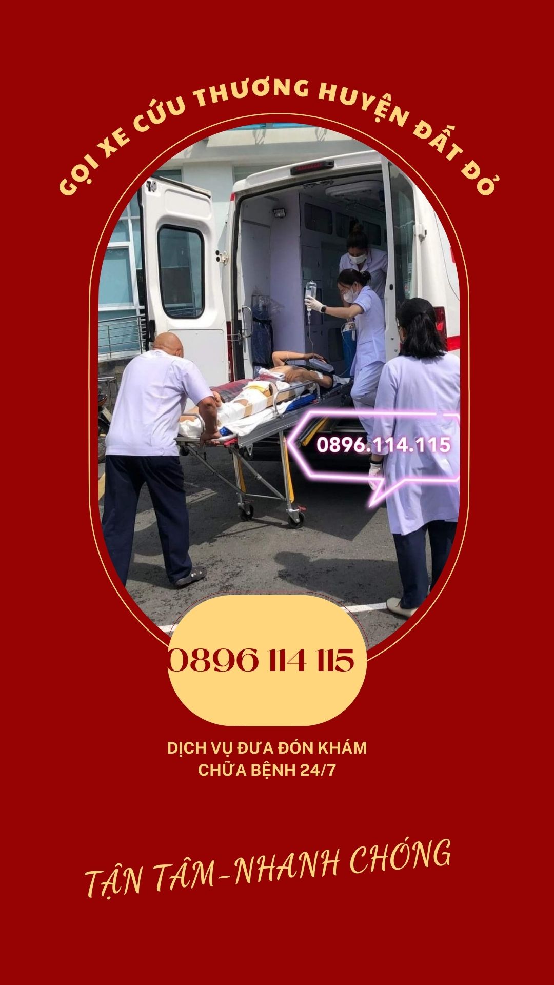 Để biết chính xác về các dịch vụ của xe cứu thương ở huyện Đất Đỏ, Bà Rịa – Vũng Tàu, bạn nên liên hệ trực tiếp với số điện thoại 0896 114 115. Tuy nhiên, dưới đây là một số dịch vụ thông thường mà các xe cứu thương có thể hỗ trợ: